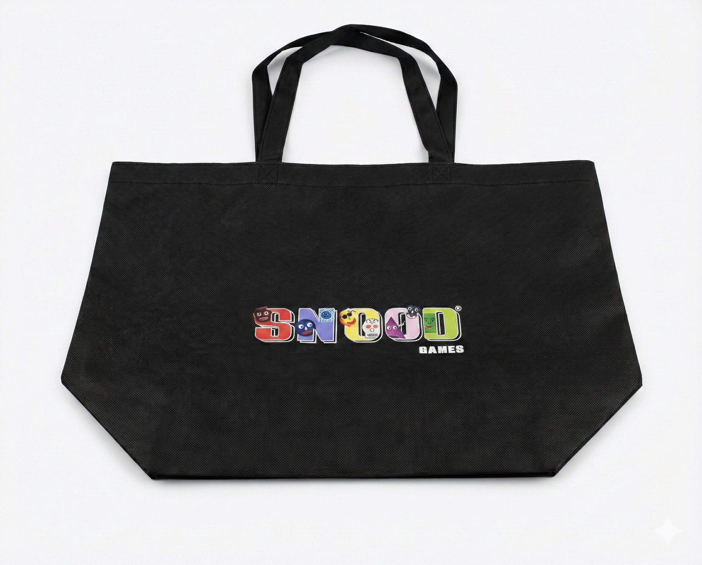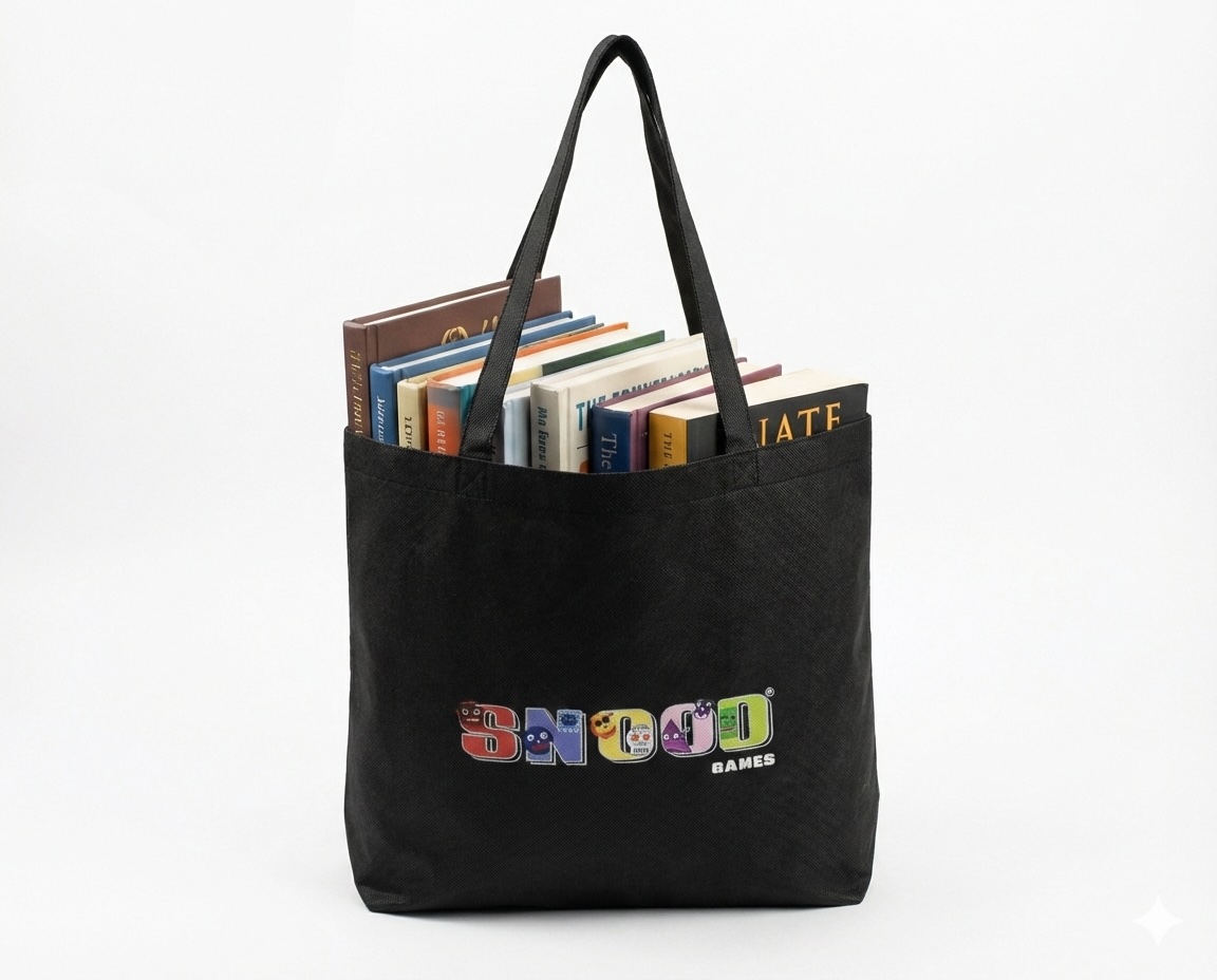 Carry the fun wherever you go with the Snood Games Black Tote Bag, showcasing the latest Snood Games design. This eye-catching tote bursts with color, featuring every beloved Snood character printed boldly on a classic black background. Made with durable non-woven material and equipped with sturdy 20-inch handles, this roomy tote easily fits books, groceries, or all your essentials for everyday adventures. The spacious main compartment ensures you have plenty of room for whatever the day brings, making this bag the perfect blend of nostalgia and function for every Snood fan. Free shipping in the USA!