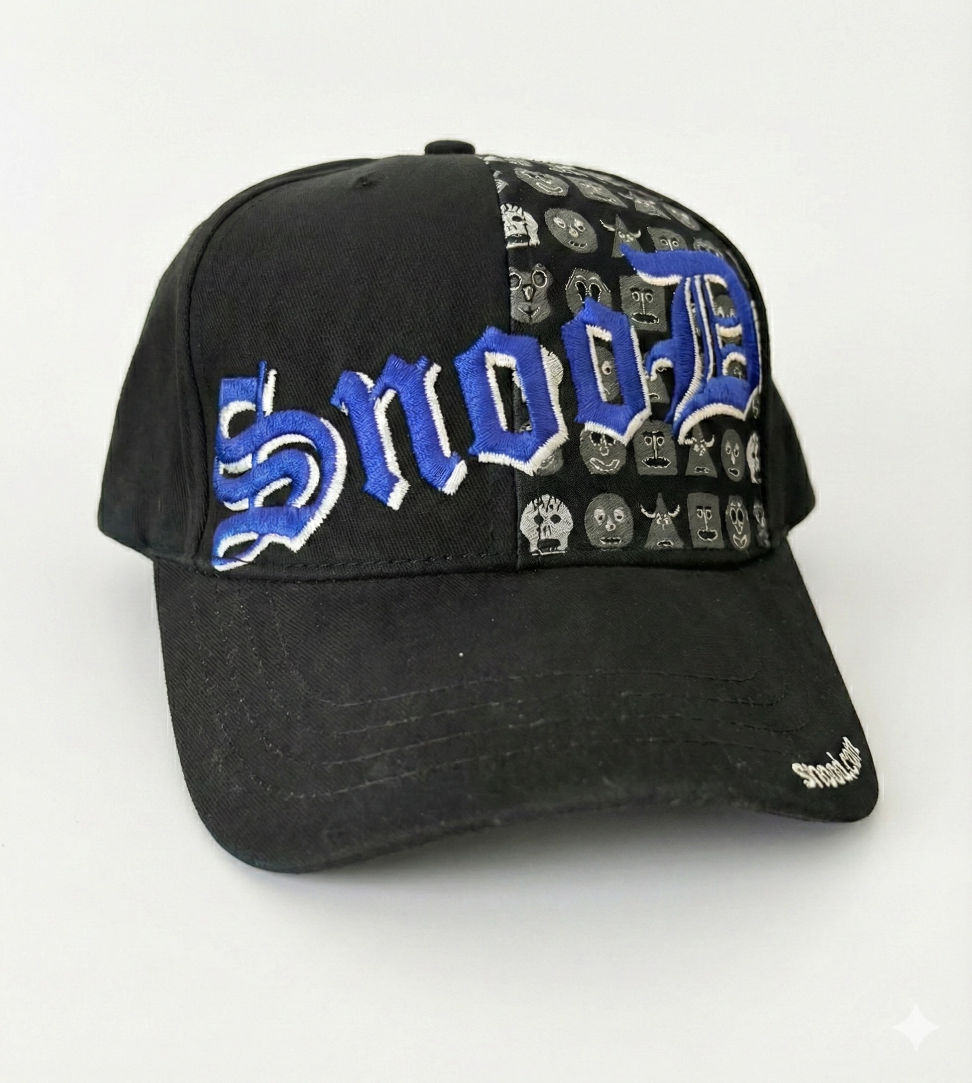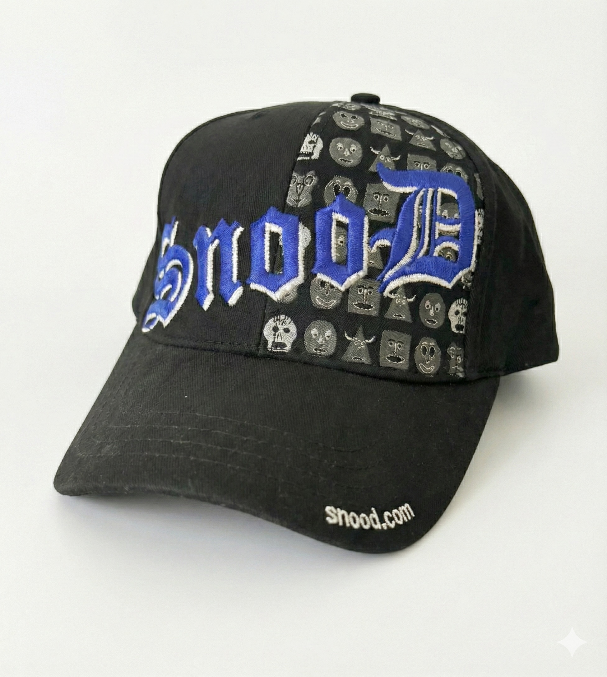 Step back into gaming history with this retro Snood baseball cap. Crafted from 100% breathable cotton, this classic black cap fits most sizes comfortably and features bold blue gothic lettering spelling “Snood” across the front. Behind the iconic logo, all the Snood characters appear in sleek black-and-white detail, creating a stylish and nostalgic look that fans will love. The bill is stitched with “snood.com,” adding a subtle tribute to the game’s timeless online legacy. Perfect for everyday wear or as a collector’s piece for Snood enthusiasts. Free shipping in the USA.