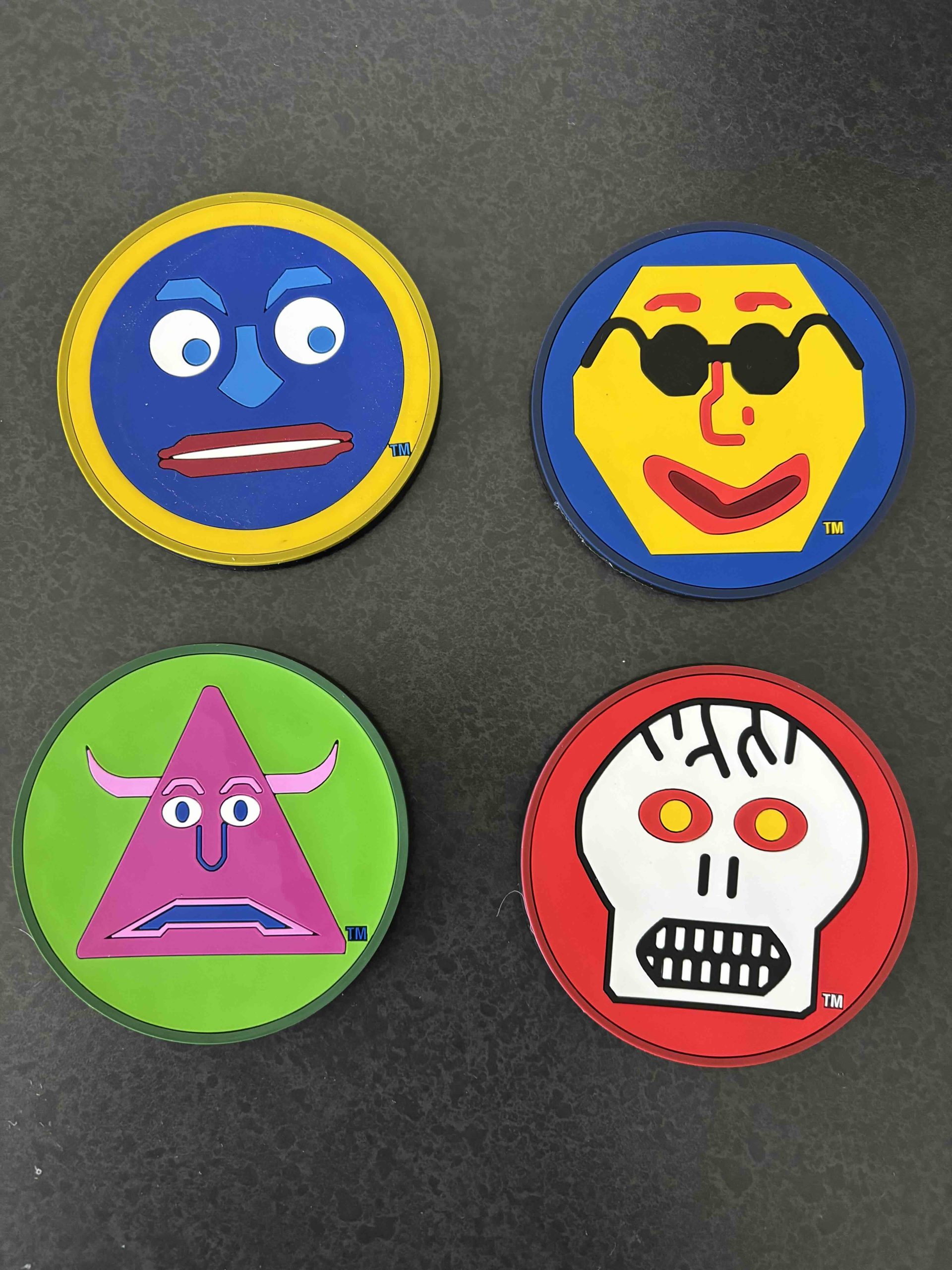 Bring a splash of Snood fun to your tabletops with this set of four round PVC coasters inspired by the beloved classic game. Each 3.375″ coaster features one of Snood’s iconic characters—cool blue Jake, clever purple Spike, sunny yellow Sunny, and the mischievous white Numbskull. Crafted from durable, waterproof PVC, these coasters combine playful nostalgia with everyday practicality, keeping your surfaces safe from spills and stains while sparking smiles with every sip. Perfect for gamers, collectors, and longtime Snood fans alike. Free shipping in the USA!